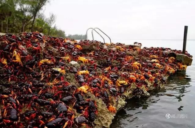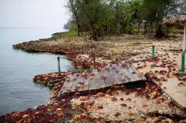 每年春季第一场雨后,这些螃蟹便从附近的森林中爬出,到海边繁衍后代。