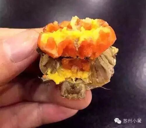 每只蟹的重量大概在50克左右,个头很小,因此母蟹都是“满黄”的。