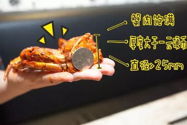 再看看,肥硕的蟹肉长度直逼泥们的手掌!最薄的地方甚至超过1元菊花软妹币,可不是一般蟹能做到的哦!精选青蟹,蟹肉紧致饱满,想象一下一口下去满嘴的肉感,不要太满足!