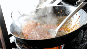 和其他家先卤后炸再炒的过程有所不同,辣艺的螃蟹是清洗好后直接下锅炒的,独特的配料加上大火的爆炒,螃蟹才下锅就被迅速收汁,配料融入到螃蟹肉里,隔老远就能闻着它的香。