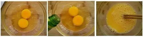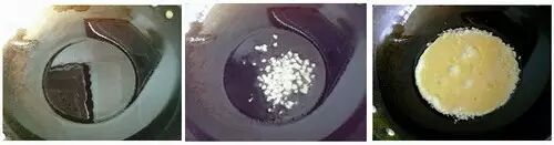 6、锅中放适量油,爆香蒜碎后倒入蛋液