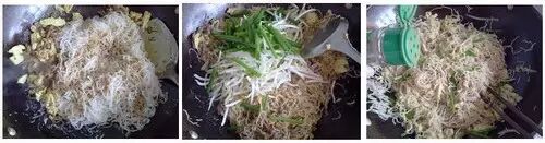 配料:肉丝、鸡蛋、豆芽、葱、姜、蒜、淀粉