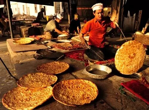 ①库车大馕 ②吾吾子羊羔肉 ③和田烤(和田果西格尔地) ④魏小胖功夫面搓鱼子