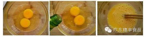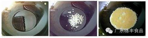 6. 锅中放适量油,爆香蒜碎后倒入蛋液