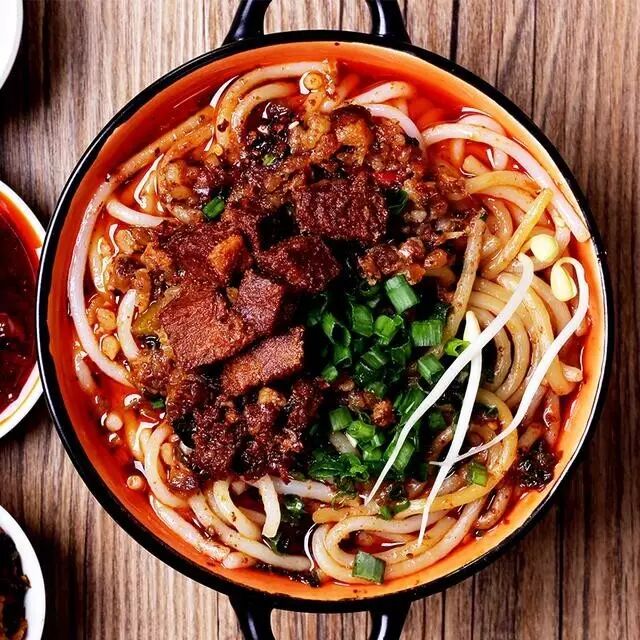 常德米粉是一种湖南常德地区的汉族风味小吃,米粉历史悠久,闻名三湘。其之所以备受青睐,与其精细的制作工艺——“三漂三熟”有很大的关系。经过十几小时制成洁白、混圆、细长且有弹性的粉条,吃起来润滑可口,配合肉丝、肉片、卤汁、酱汁、红烧、红油、菌油等等十几种的盖码,当之无愧的第一名。