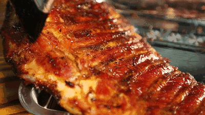烧排骨在出锅后切开之前都会刷上一层蜂蜜,如果你不喜欢这种甜甜的口感,悄悄告诉你,还可以选择孜然口味哟!