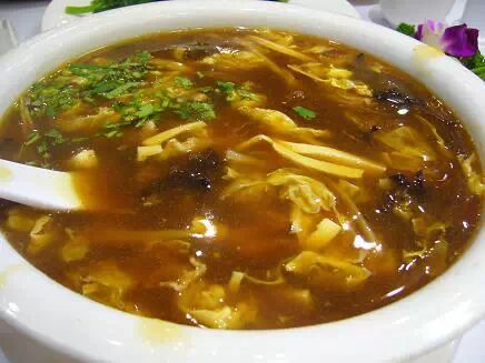 鱼 翅汤是高级中国菜的代表,普通老百姓哪里舍得自掏腰包去品尝。听说中国的公务员们很快就不能用公款吃鱼翅了,要吃就赶紧吧。日本老百姓喝的是加入了鱼翅的 鱼翅味道的汤,至于含百分之多少就不知道了。我就常常买了调料来,兑了水,加热搅匀后加一个鸡蛋,一包十几块钱,四口人乐呵呵的分,十分满足。