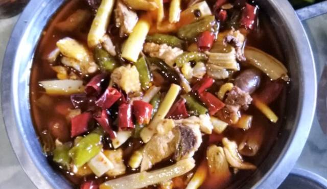 实业路脏兮兮的河边有家鲜椒跳,微辣都已经很辣,亲测跳水兔最好吃。