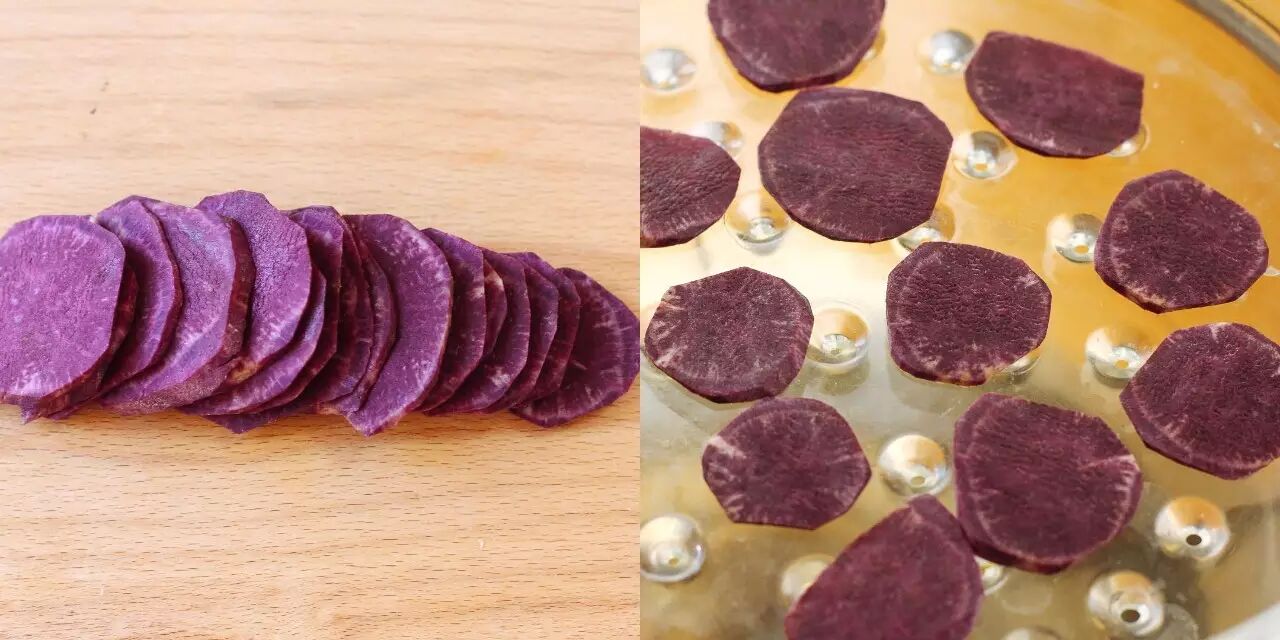 PS: 切成薄片是为了节省蒸紫薯的时间。