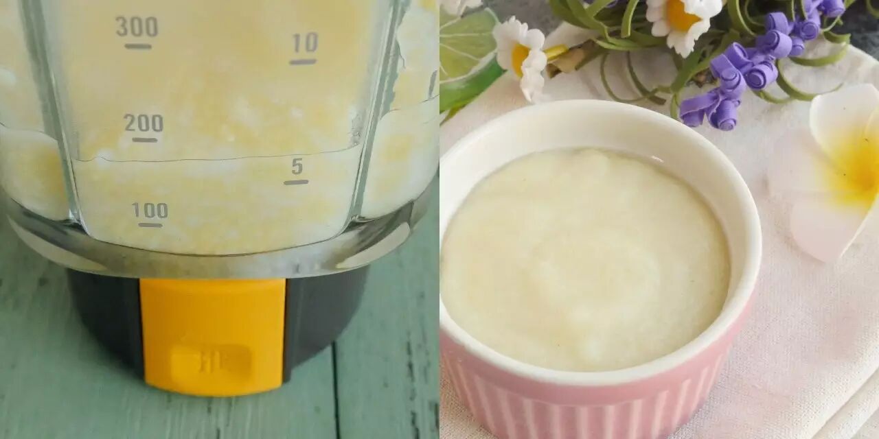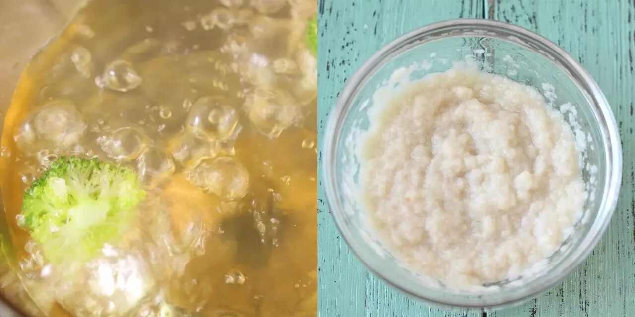 3. 煮好的米粥放入搅拌机中,搅拌成细腻的米糊。