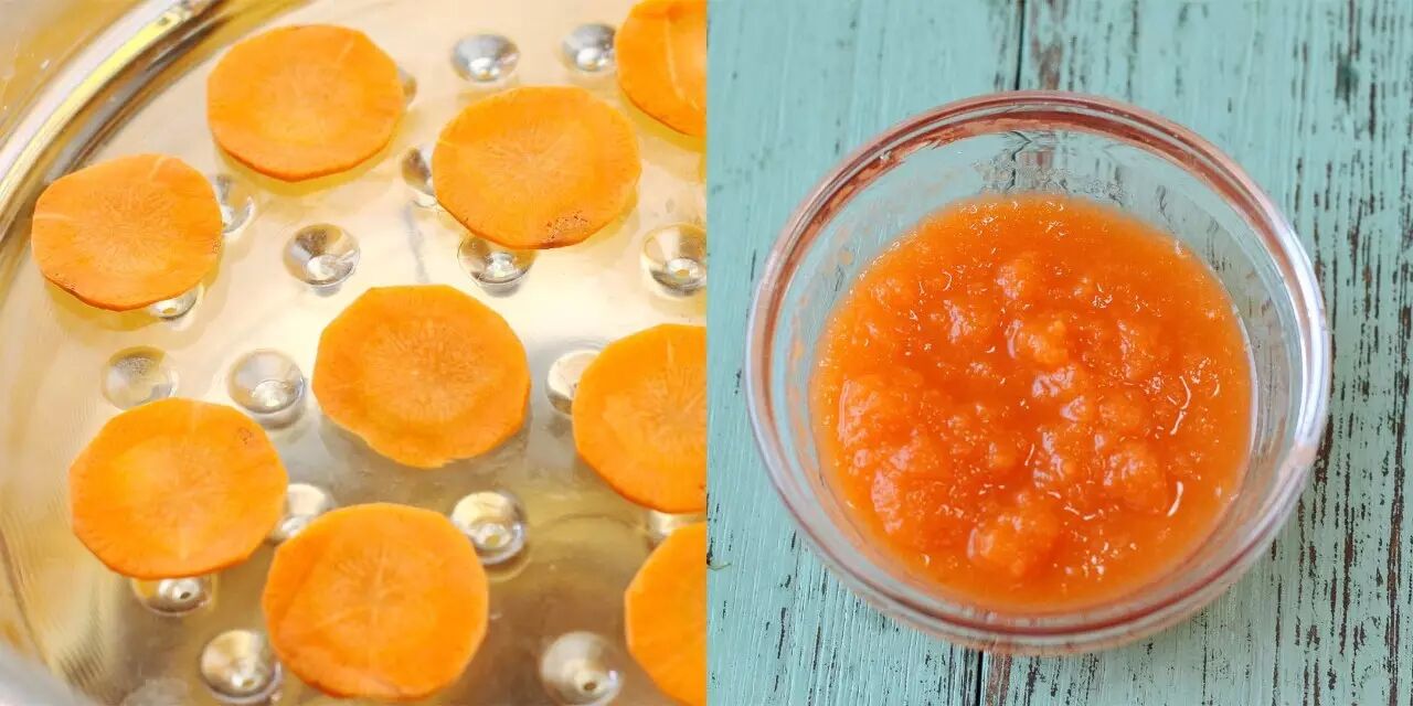 PS: 如果最后混合好的胡萝卜泥比较稠,可以再适当添一些温水,由稀到稠让宝宝逐步适应。