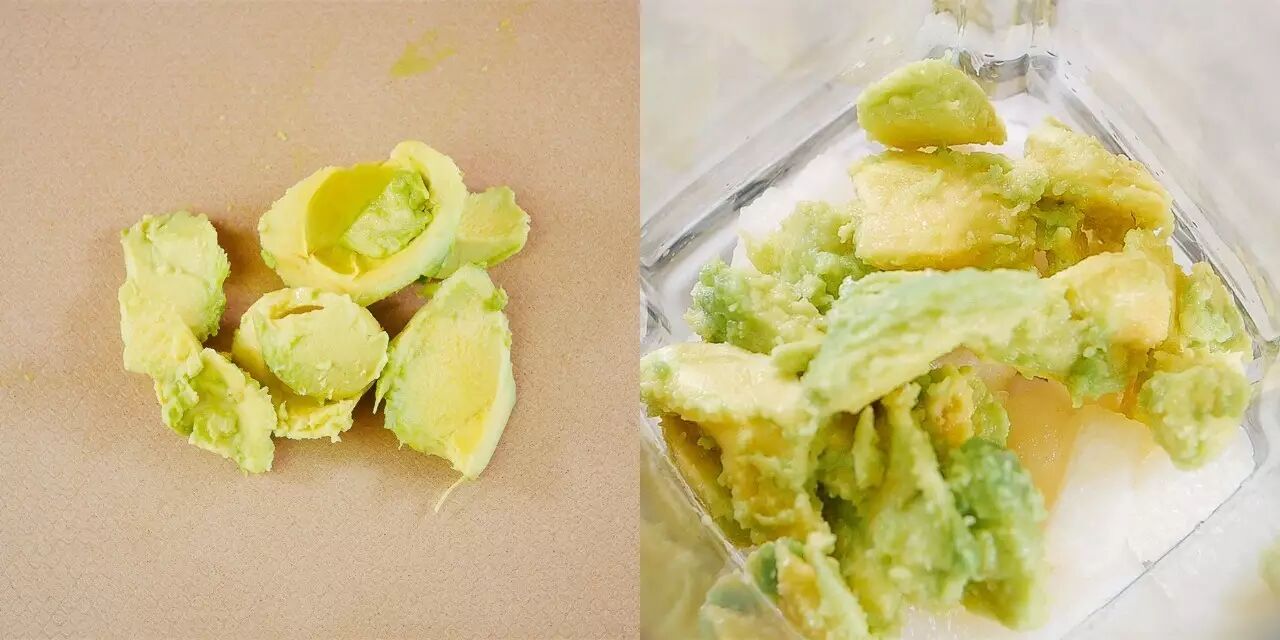 2. 将牛油果放入搅拌机中,添加适量温水。