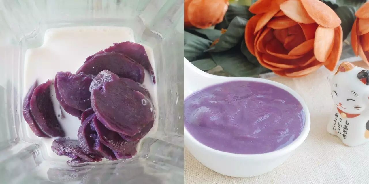 3. 再将紫薯和配方奶倒入搅拌机中。