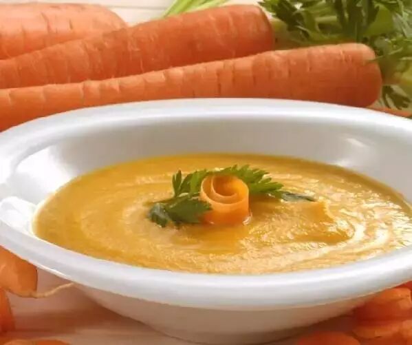 适宜5个月以上材料:胡萝卜一根做法:将胡萝卜洗净煮熟,去皮,切成薄片,取出少量,碾碎加汤,搅拌成糊状即可。