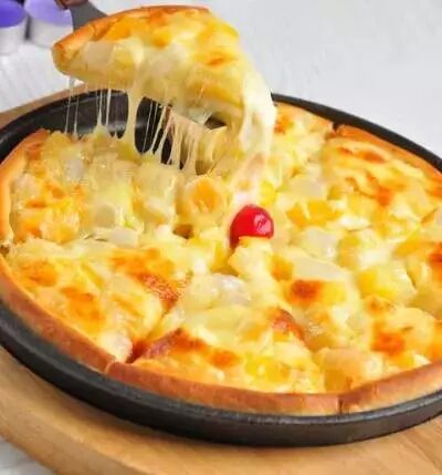 适合15个月以上宝宝食用。材料:6寸披萨皮一张、大胖甜椒四分之一个、番茄一个、洋葱一个、猪肉少许、马苏里拉芝士奶酪少许做法:1、 披萨皮可从超市购买,也可以自己用酵母和面发酵揉成饼状即可;2、 洋葱和番茄剁碎,先入油锅炒至洋葱烂熟之后再放入番茄炒至糊状,即成番茄酱,也可购买市售番茄酱,但颗粒感没有这个浓厚;3、 猪肉切丝炒熟,大人吃可以用香肠,小朋友吃就换成猪肉或者虾肉或者鱼肉都可以啦;4、 甜椒切细丝,或者切碎,马苏里拉芝士奶酪擦成丝;5、 放凉之后,把番茄酱涂抹到披萨饼皮上,然后撒一层青椒碎,再撒上马苏里拉芝士奶酪即可;6、 入烤箱,200度,20分钟;7、 没有烤箱的也可以用平底锅,或者电饼铛,一样美味。