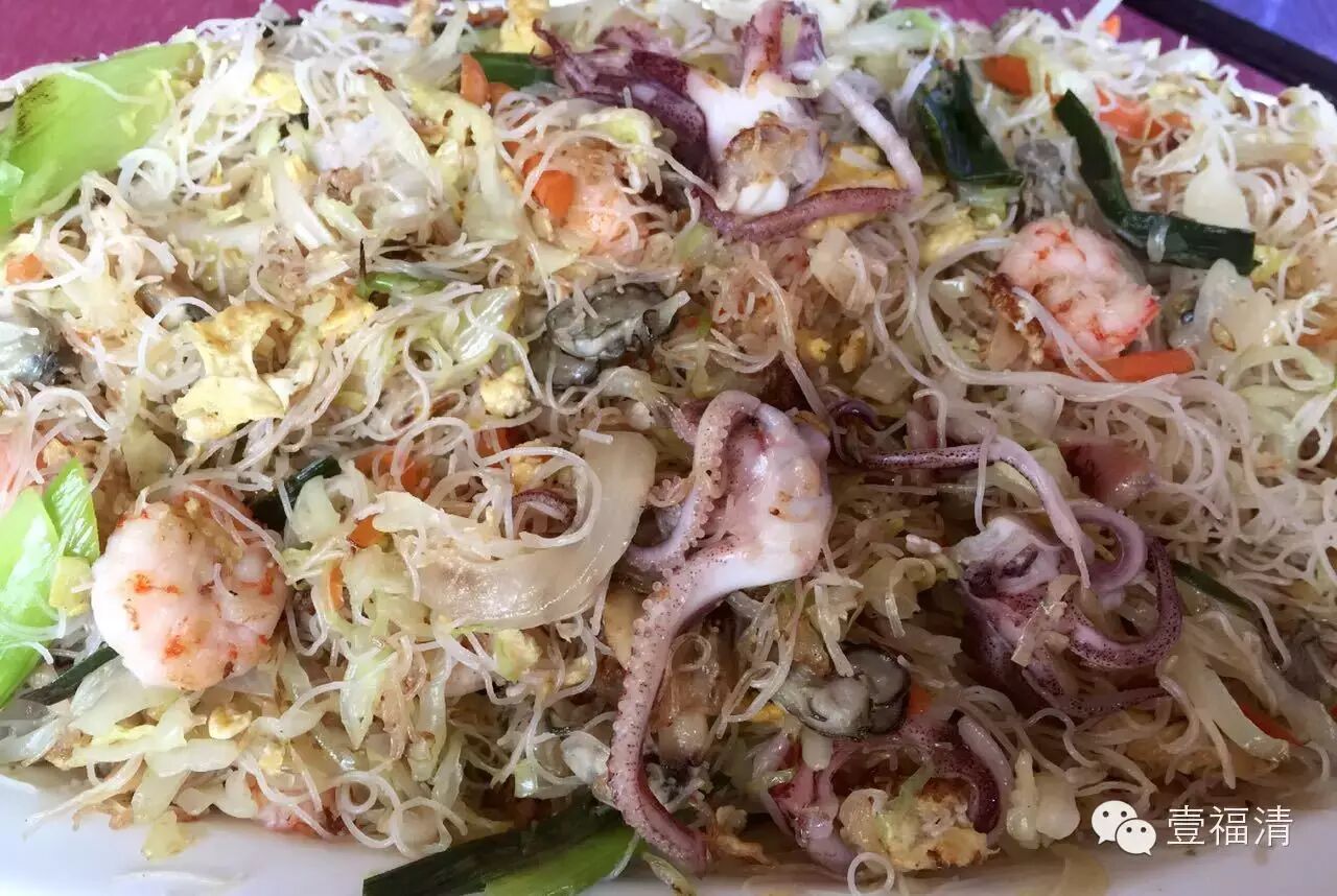 米粉 海蛎 虾仁 鱿鱼 花蛤肉 鸡蛋 胡萝卜丝 包菜 洋葱 大蒜 葱 淀粉 盐 生抽 老抽 料酒 香醋 五香粉 胡椒粉