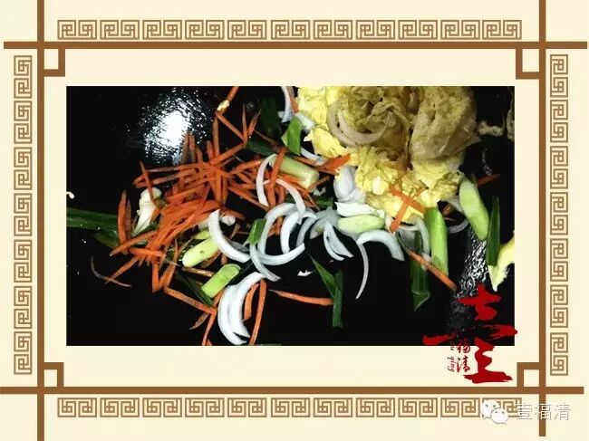【首先倒入适量油,待锅热后倒入鸡蛋,将鸡蛋煎成嫩黄色,然后将大蒜、胡萝卜丝、洋葱倒入,大火煸炒,加入适量盐、料酒、酱油、香油煸炒出香味即可。】