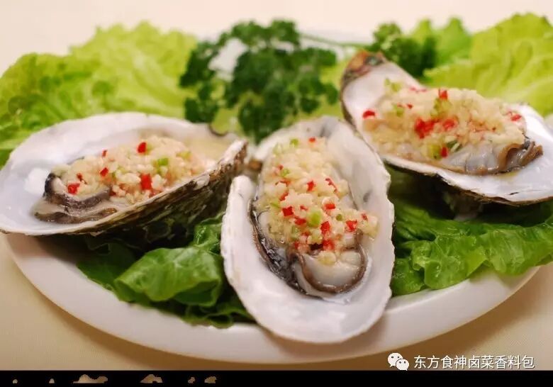 原料:生蚝6只(进口),蒜末30克,姜末15克,葱白(碎)15克。