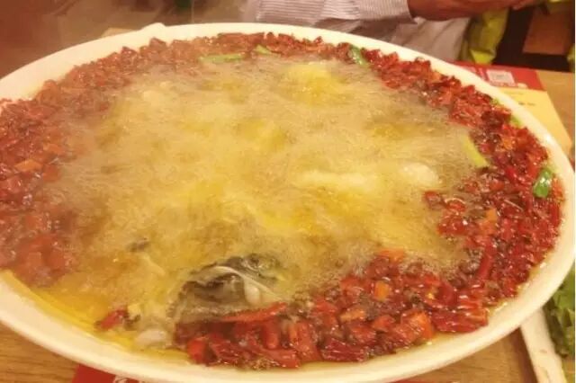 随着扑鼻香气,一大盘烤鱼端上桌,配合着精美的造型、色彩斑斓的外观,光见这架势就早已垂涎三尺。迫不及待下筷,鱼肉嫩而香,鱼皮焦脆可口,下面藏着你事先点好的配菜,藕片、土豆条、莴笋……都是配料佳品。