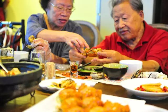 细心剪开蟹腿,舀出膏肉,送至嘴边?