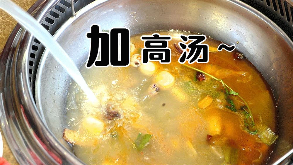 在螃蟹吃过瘾后,倒入熬制了6小时的大骨汤,香辣干锅秒变火锅!海鲜的鲜与营养全集中在这一锅,涮起来特别好吃。