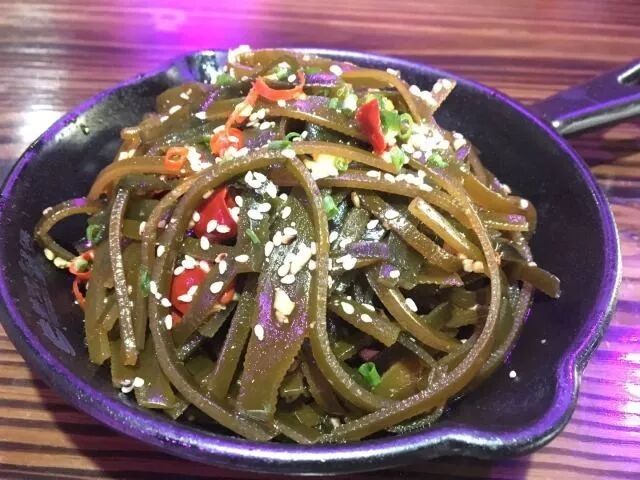 这道凉菜跟上面的海带有所不同,海带丝酸酸的,微辣,加上芝麻的点缀,喷香喷香的,口水都要出来了...