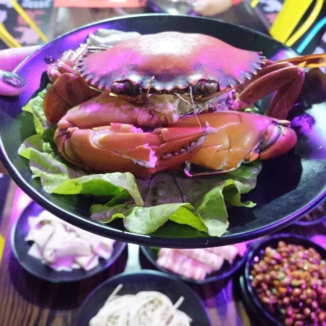 缅甸蟹壳脆肉紧,肉质鲜嫩,饱满多汁,再配上秘制的香辣酱汁,味道超满足!除了蟹,还有豆芽、莴苣做辅菜,好吃的不要不要的