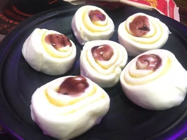 这个小花卷旁边要着重推给你们,因为真的太太太好吃了,上面的蓝莓酱激发出我体内的少女心,面软糯无语,微甜,配上蓝莓酱,jiangjiangjiang![]()