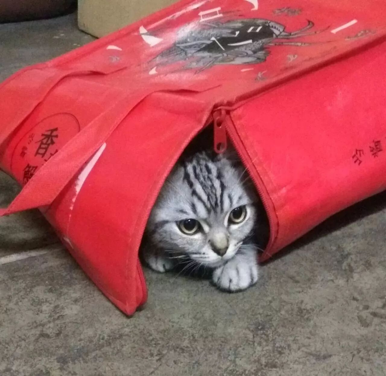 此后但凡看不见卤煮的时候他必定是在这个袋子里趴着,十分安静。而且对来来往往的纸箱子视而不见,只喜欢这个袋子,可以说十分长情了。