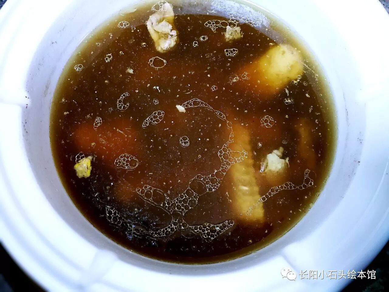 我喜欢贤阿嬷炖的鱼汤,像牛奶一样的白色,甜丝丝的;