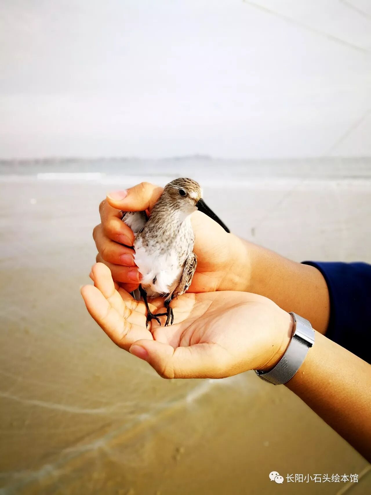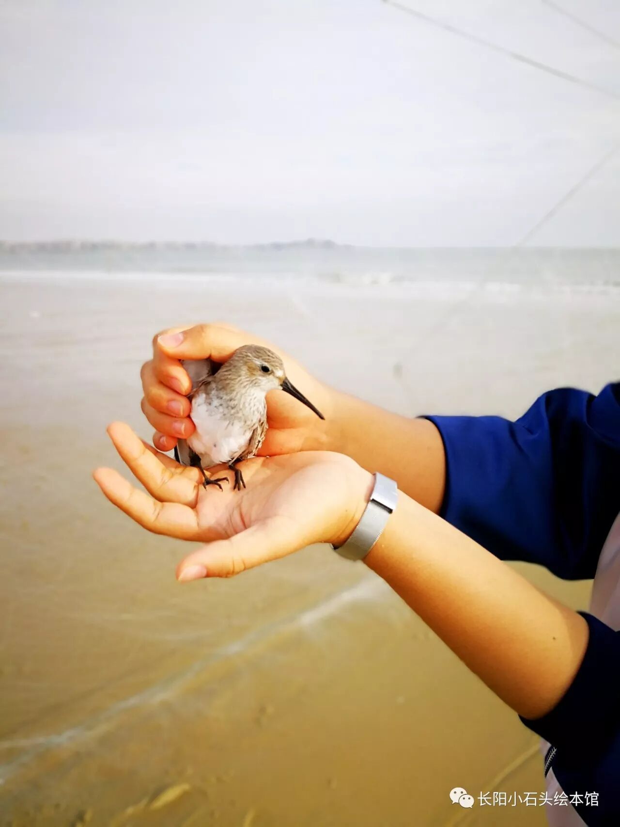 一只被渔网困住的海鸟,很配合,我和贤阿姊成功救它回到大海的上空,生命的力量就是如此强大。