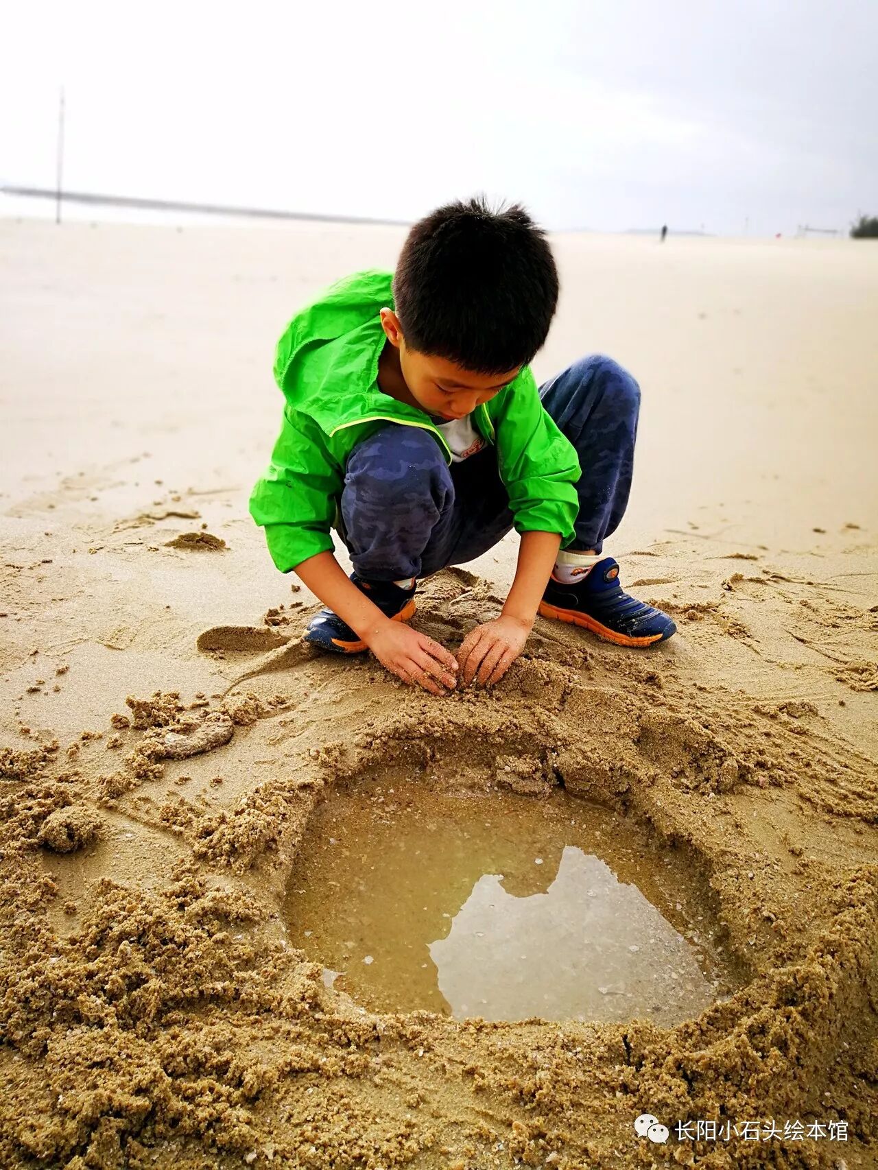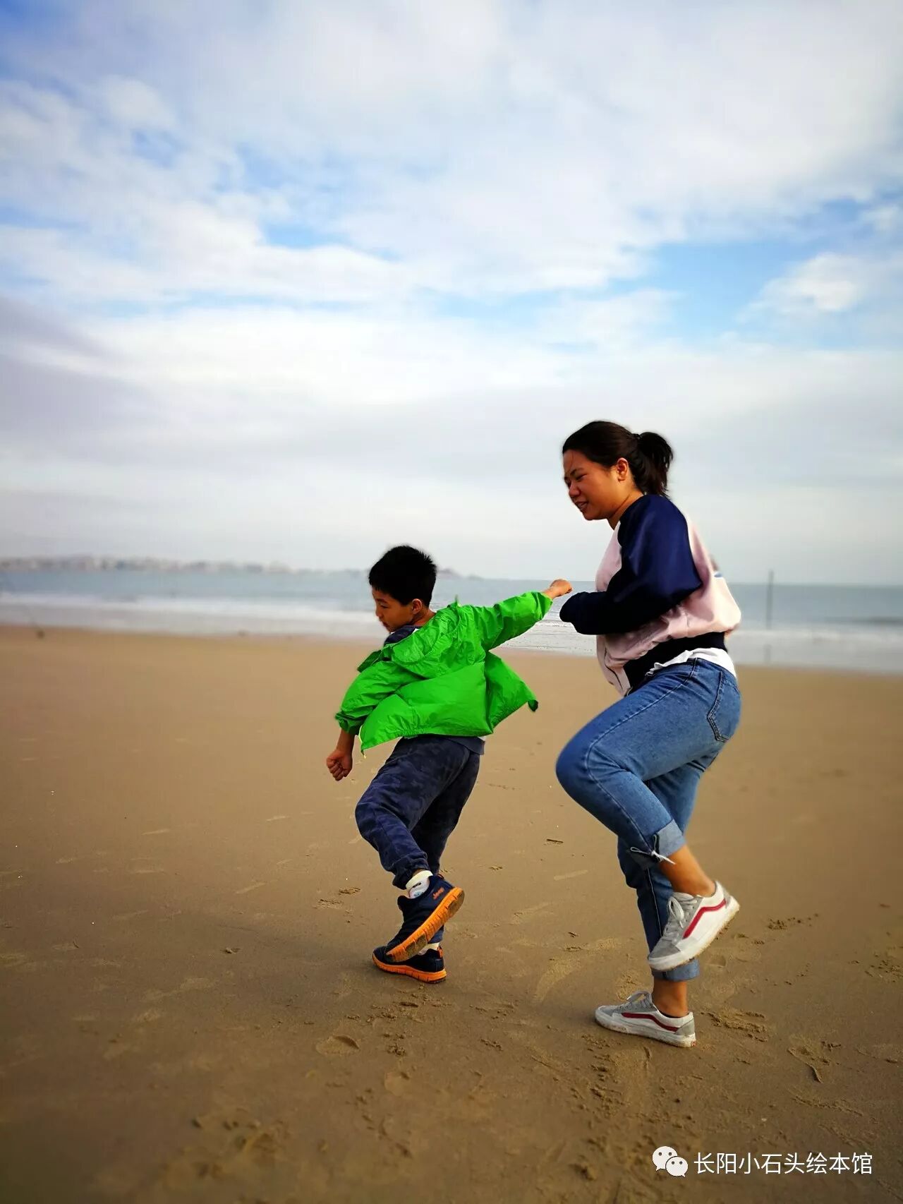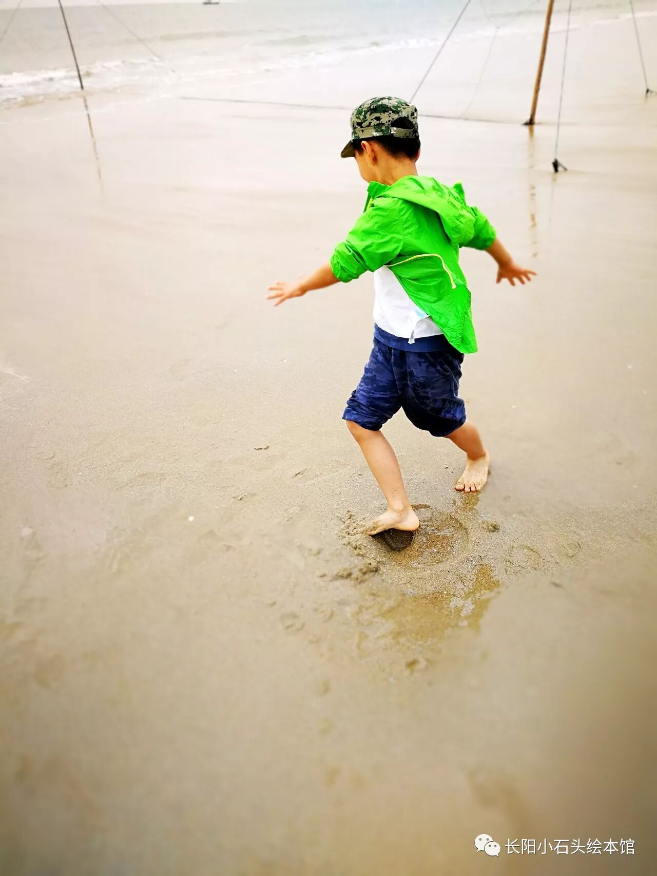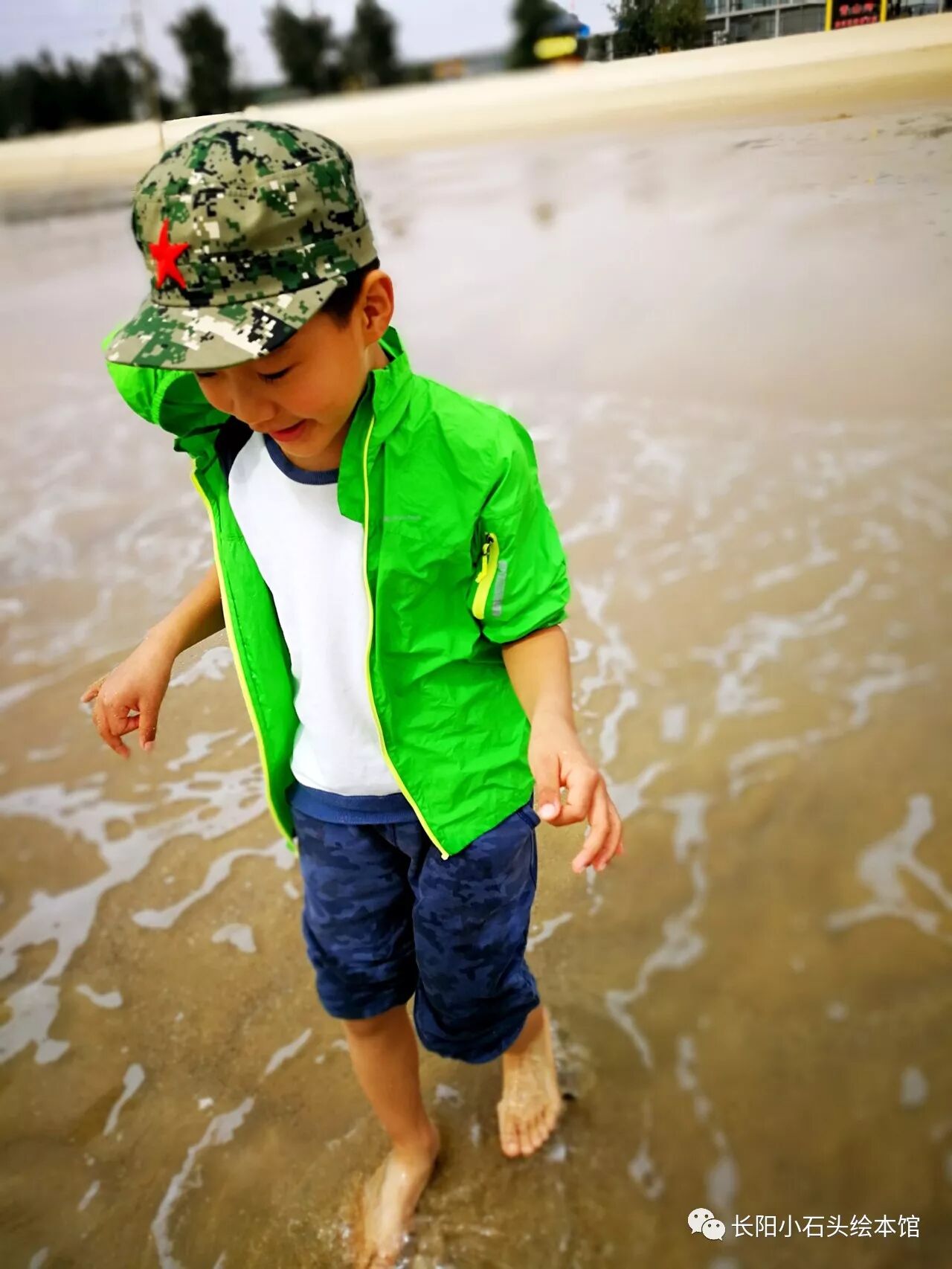 青山湾的沙子依然如往年一样干净,海水依然如往年一样清澈。贤已经完全不怕水了,可以看着海浪翻滚而来,却依然勇往直前。