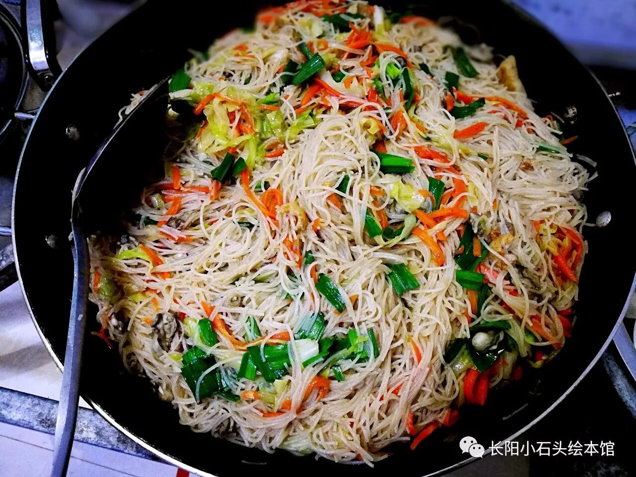 我喜欢贤二伯母做的炒米粉,有虾仁,有瘦肉,有各种菜,还有米的纯香;