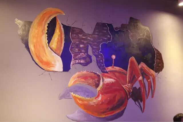 ▲走进餐厅,一只蟹破墙而出惟妙惟肖宛如一只真的大螃蟹,优雅、浪漫、狂野、霸气是我对它第一印象。