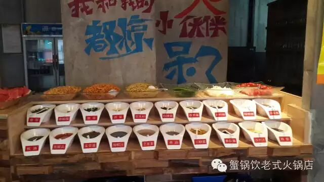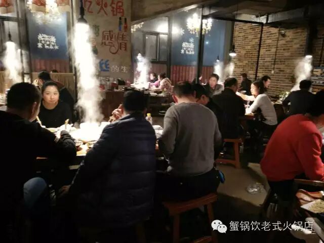 就餐环境:跨界、穿越、复古的个性化装修。彰显着特色亲情化的服务。倾力打造濮阳吃货们屌丝的大本营,来这里,可三五亲友团团坐,如家的环境,是您和亲朋好友聚会轻松的理想去处;来这里可追忆童年,是让您走进梦里,花落纯真年代的好地方;来这里可爱情表白,等你吃完火锅,少年娶我可好;来这里可闺蜜倾诉,轻松惬意,任你万千烦恼皆抛身后;来这里可孝敬父母,树欲静而风不止,子欲孝而亲不在;爱他/她就来蟹锅饮!过节就来蟹锅饮,品尝家的味道。热气腾腾、麻辣鲜香的火锅象征着亲们猴年的日子蒸蒸日上、红红火火!
