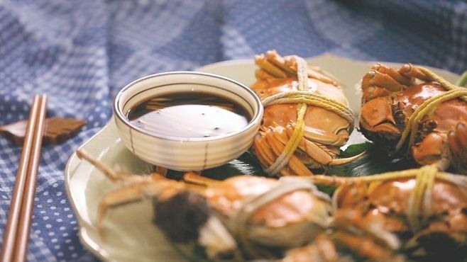 ③ 将生抽、醋、香油、葱姜蒜末制成蘸料,再配一杯暖胃的黄酒,与大闸蟹一同食用,滋味无穷。