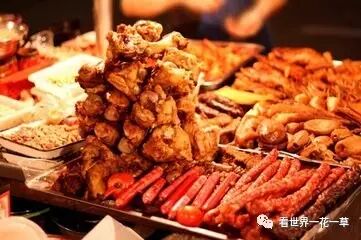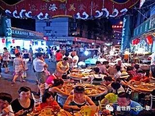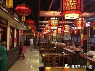 餐厅的服务员都站在自家门口喊着过往行人光顾自家的店。