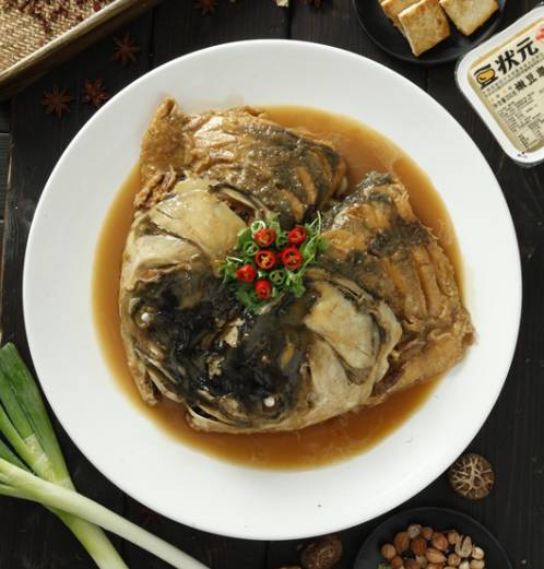 白色的豆腐和黑色的香菇在鱼头下微微起伏