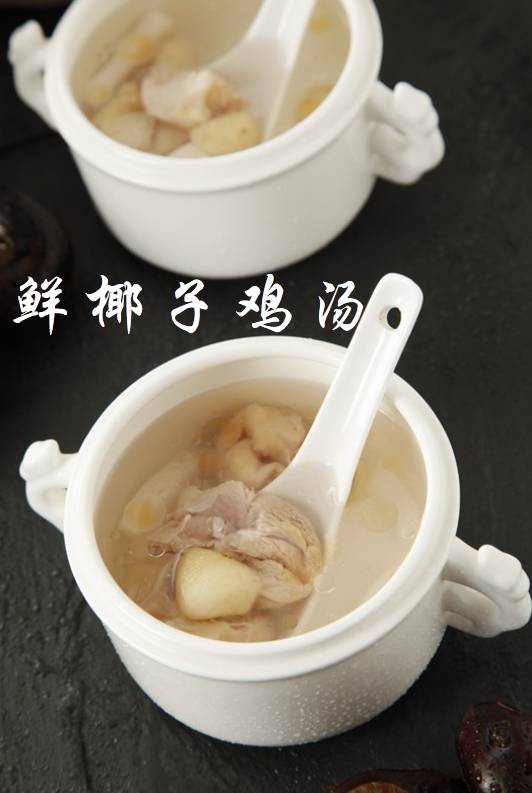 用鲜椰汁、椰肉加三黄鸡炖制而成,