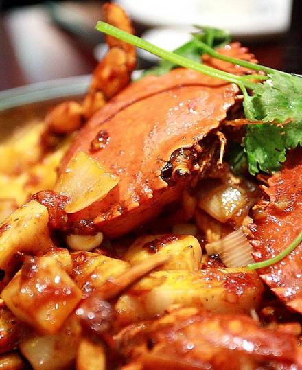 戴上一次性手套抓起半只螃蟹,冒着烫嘴的风险,咬掉一大坨蟹肉。麻辣一下刺激了整个人的神经,有种头皮发麻的感觉。味蕾即刻被咸香侵占,最后舌尖泛起丝丝鲜甜,两个字“新鲜”!