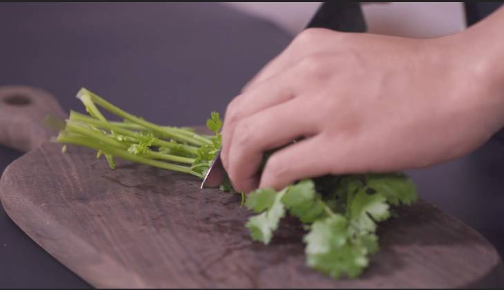 2.姜、蒜切片,葱、香菜切段,小米辣切滚刀条,装盘备用;