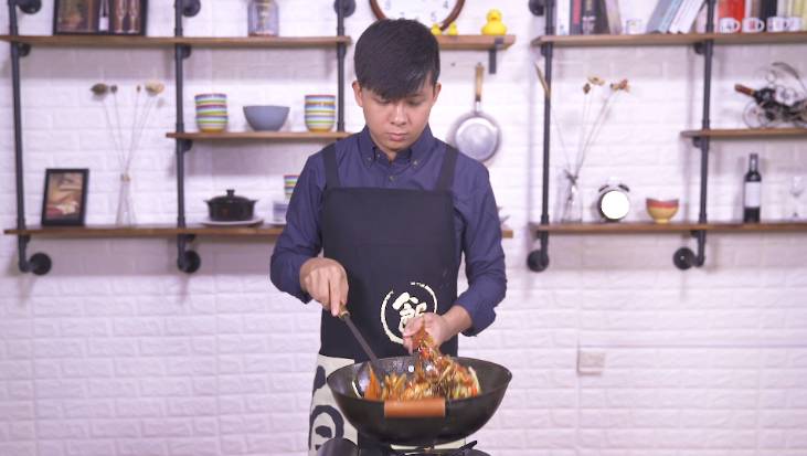 5.加入适量的蚝油、生抽翻炒均匀,进行调味(PS:秀一个颠勺绝技![]()