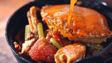汤汁都埋在了肥美的蟹膏里,肉质弹嫩,吃下去满嘴鲜香,汤汁还能拌白米饭。手指上的香味,躺被窝里还能再舔一遍:)
