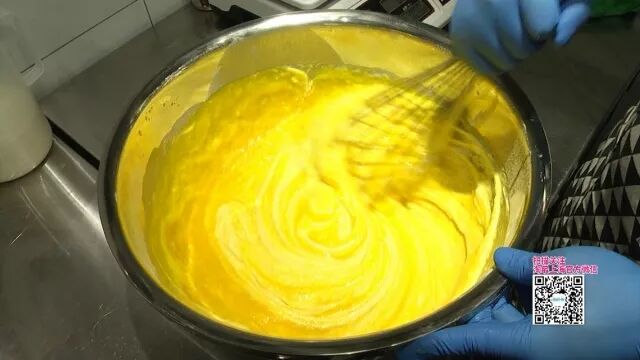 与色拉油和牛奶搅拌,加入事先挑出的鸡黄,