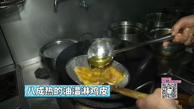 虽然这道菜叫百花鸡,但用到的只有鸡皮。