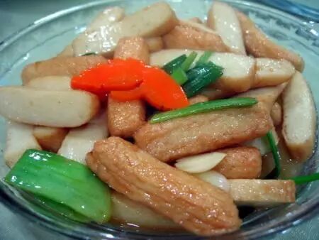 鱼豆腐又称油炸鱼糕,以鱼肉为主料,绞成肉泥配以其他辅料并挤压成型块状。食之香郁,富有弹性,且营养丰富,是火锅、炒菜、麻辣烫的好材料。