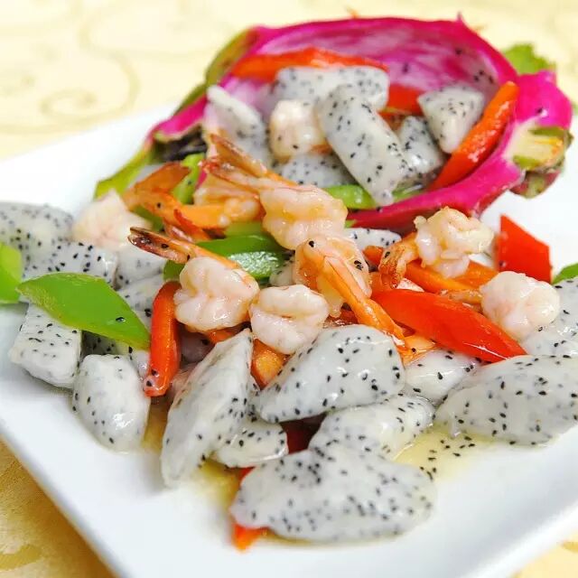 火龙果炒大虾