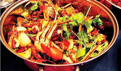 香辣蟹78一份,但比很多路边排挡其实实惠一些,因为盘子里基本冒的什么勾头,都是螃蟹。调味也不错,螃蟹基本都挺新鲜,味道比外面滴排挡淡一点,冒的那么多油,总的来说很好吃。毕竟是正规餐厅,环境比较好,卫生也让人放心些。
