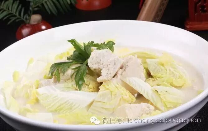 3、起锅热少许油,先爆香姜末,加入两大碗水,放入白菜和冻豆腐块一起用大火煮滚,转小火炖10分钟左右,用盐、酱油、蘑菇精、少许白胡椒粉调味,最好放入泡好的粉丝,滚上2分钟后即可出锅了。