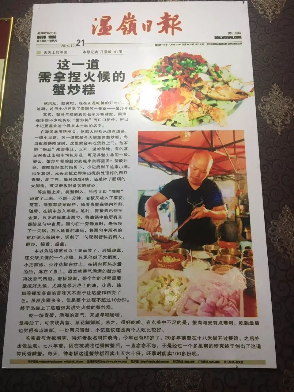 今天小编就来给大家说说泽国这家在温岭已经很有名气的“蟹炒糕”店,已经开了8、9年了,其实“蟹炒糕”官方名字应该叫“香辣蟹”,之前还被温岭日报报道过哦!